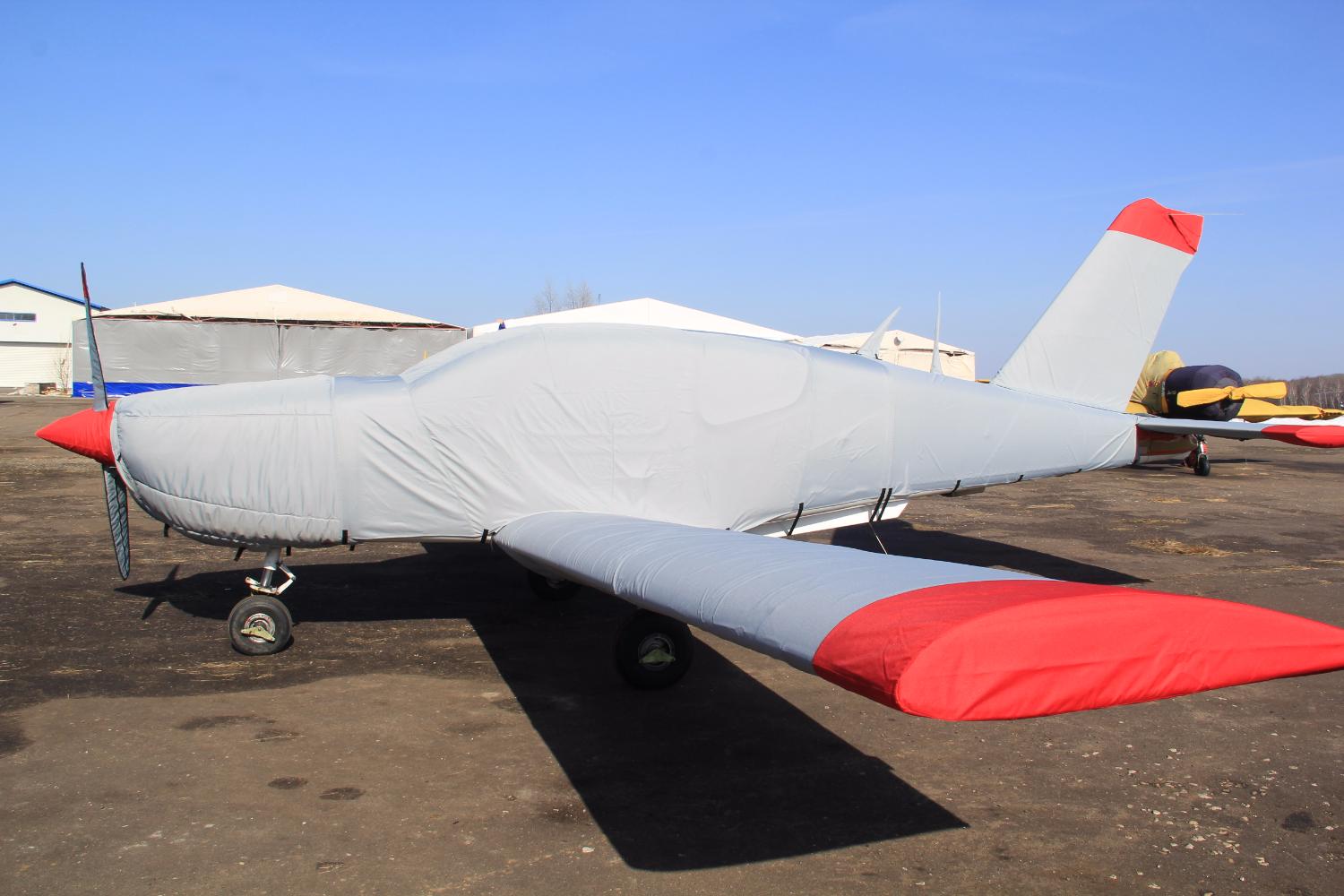 Чехол на стабилизатор IPER состоит из прочного материала Sunbrella Plus, который за счет полиуретановой пропитки обладает стойкостью к воздействию влаги, образованию плесени и грибка. К тому же, однослойный аксессуар устойчив к выцветанию. В качестве опции возможно изготовление чехла на киль с прослойкой из синтепона для снижения интенсивности охлаждения хвостовой части самолета в холодный период времени, а также быстрого прогрева при использовании дополнительного подогревателя.